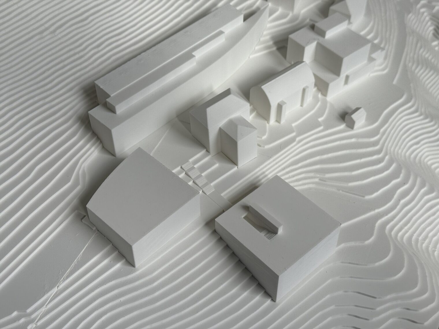 Die Setzung eines solitären, mehrgeschossigen Baukörpers im offenen Gelände stellt für die Verfasser den passenden Entwurfsansatz im vorhandenen Kontext einer lockeren Campusverbauung dar. Dieser Solitärgedanke wird in der Überarbeitung noch konsequenter umgesetzt. Durch Absetzen des Erschließungsstegs vom Hauptvolumen wird das Haus an allen vier Ecken freigestellt und vom Hang umspült.